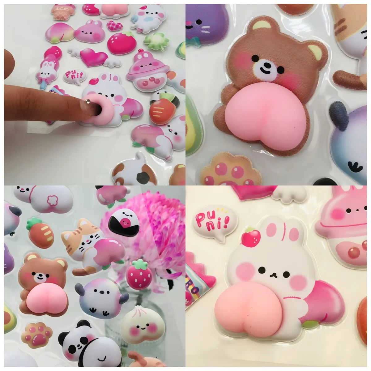 Autocollant de fesses squishy gonflé personnalisé de dessin animé 3D pour les enfants