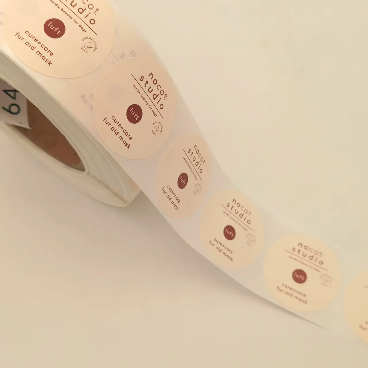 Jojopack a une technologie d'impression professionnelle avancée et un système de contrôle de la qualité strict. JoJo Pack fournit également des autocollants de cercle en bouteille pour de nombreuses marques de soins domestiques et de peau bien connues. Cette étiquette peut mettre en évidence le nom et la fonction du produit.
