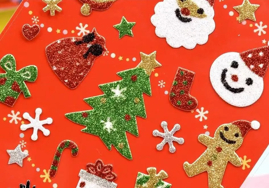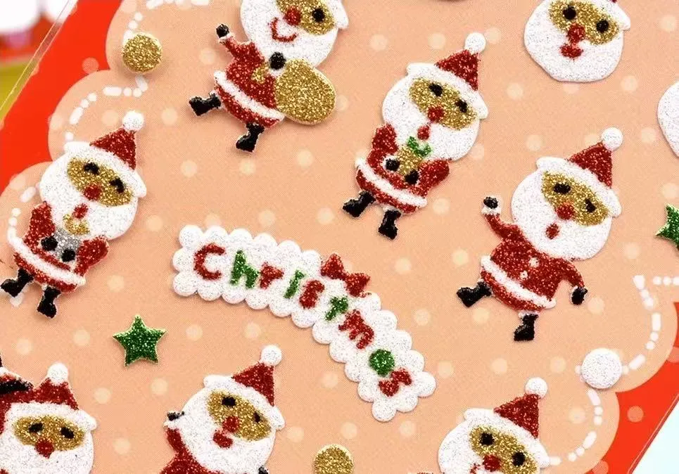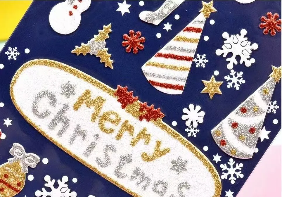 Les autocollants de paillettes de Noël peuvent obtenir une excellente adhérence sur diverses surfaces lisses telles que le plastique, le verre, le métal et le papier.