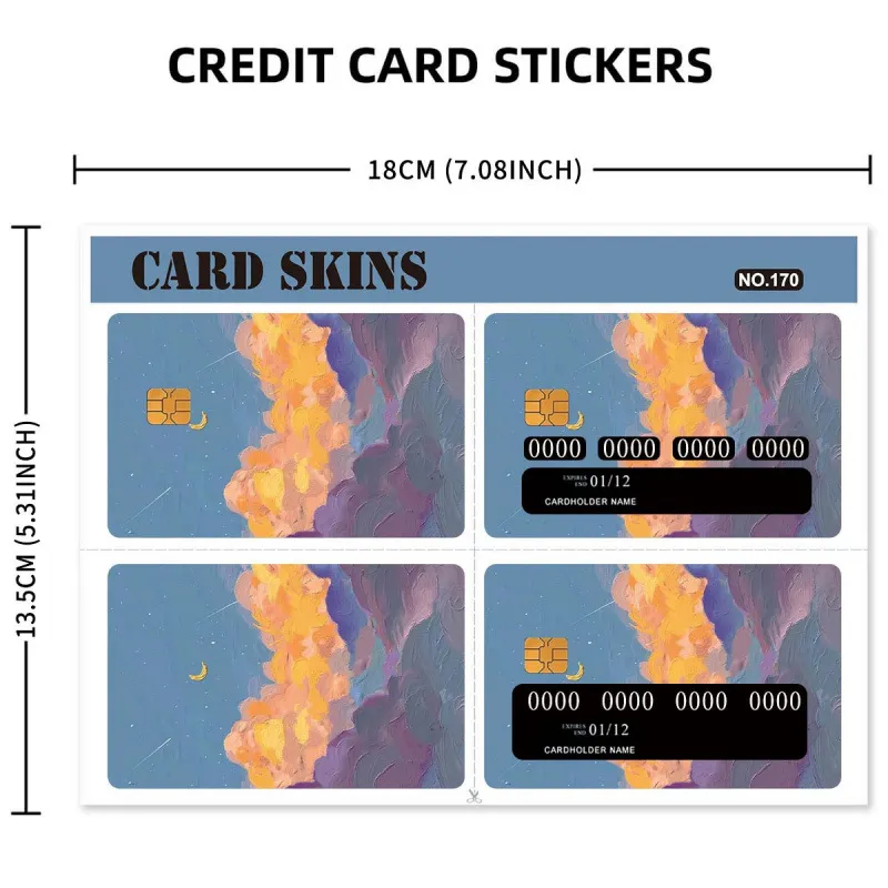Autocollants de carte de créditsont des autocollants décoratifs personnalisés qui peuvent être coincés à la surface des cartes de crédit. Ils sont faits de matériaux ultra-minces et respectueux de l'environnement et n'affectent pas le balayage normal de la carte ou la lecture de la puce. Il permet non seulement aux cartes de crédit de présenter un style unique, mais certains produits ont également des fonctions pratiques telles que l'anti-swipe (blocage RFID), et en même temps prendre en charge la personnalisation du logo. C'est un produit qui combine la beauté et la praticité.