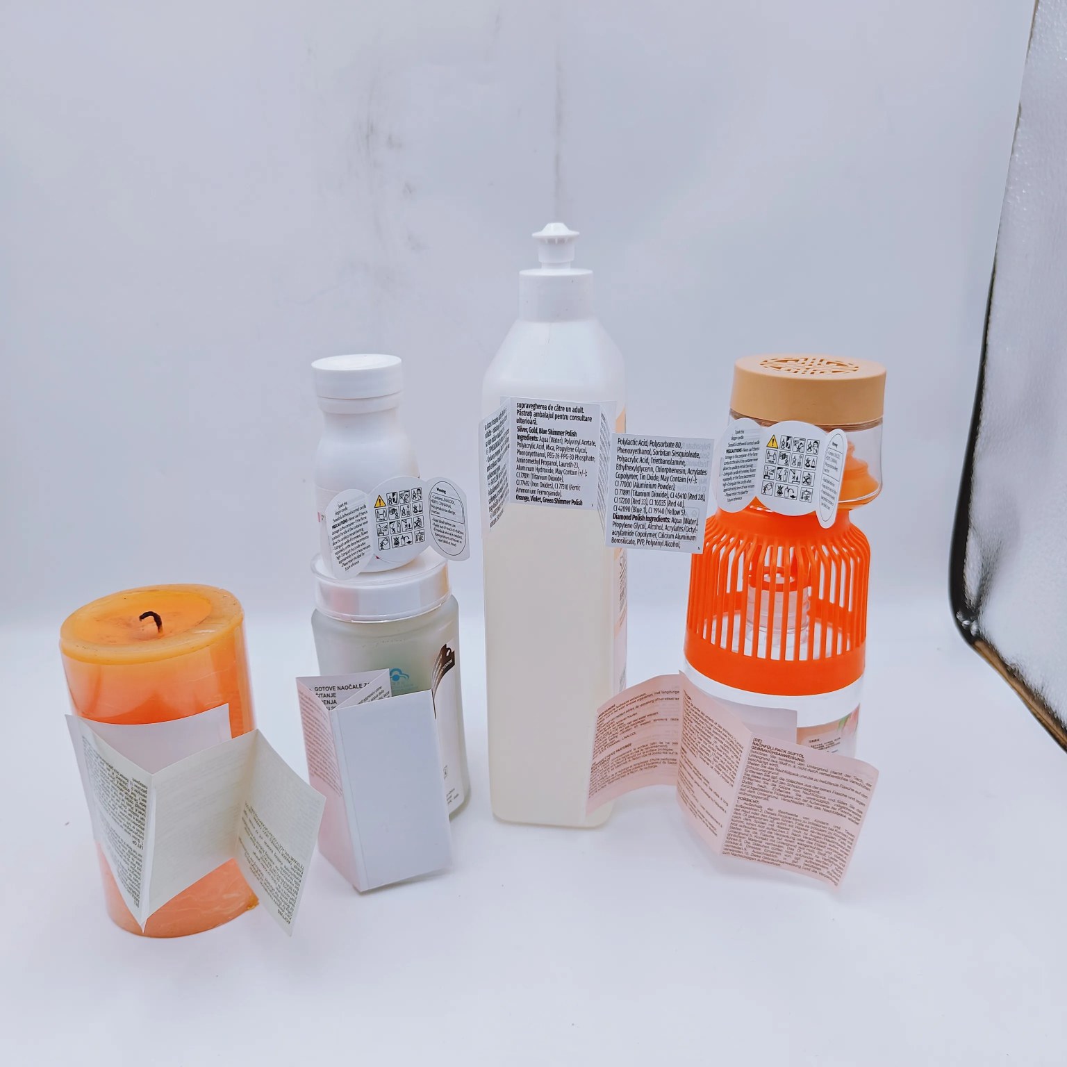 Pour différents types de bougies telles que les bougies parfumées, à la cire d'abeille ou décoratives, les étiquettes en livret dépliable sont idéales pour intégrer des informations multidimensionnelles. Ils peuvent inclure des directives de sécurité essentielles telles que se tenir à l’écart des produits inflammables, une durée de combustion appropriée et des méthodes d’extinction.