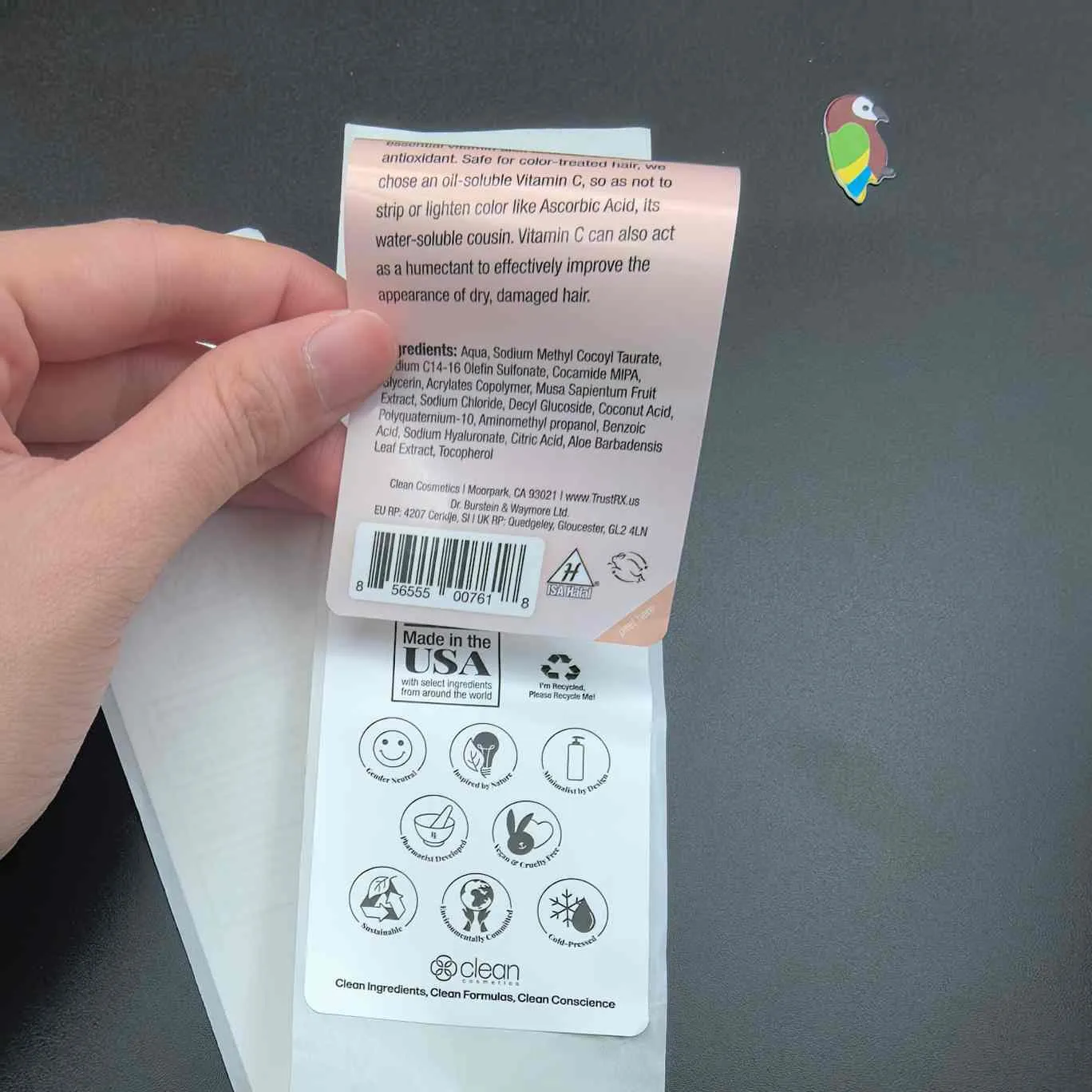 R : Il s’agit d’une étiquette comportant plus de 2 couches pour les cosmétiques. Décollez la couche externe pour révéler des informations supplémentaires sur la couche interne sans augmenter la taille de l'étiquette.