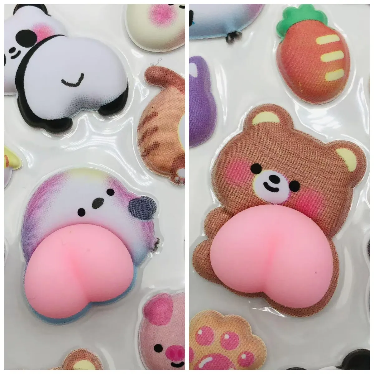 Contrairement aux jouets anti-stress traditionnels, ces autocollants anti-stress en forme de fesses sont livrés avec un adhésif sans résidus au dos, ce qui leur permet d'être collés et réutilisés comme des autocollants ordinaires. Ils peuvent être attachés à des téléphones, des ordinateurs, des ordinateurs portables, des bouteilles d'eau, des bureaux ou toute surface que vous souhaitez décorer, et servir à la fois de jouet anti-stress et d'expression unique de la personnalité.