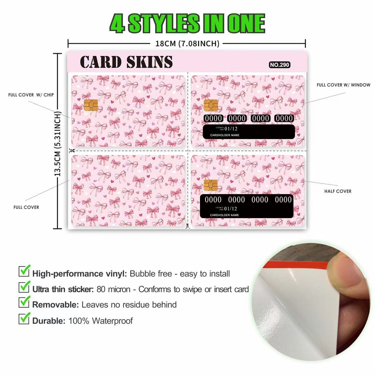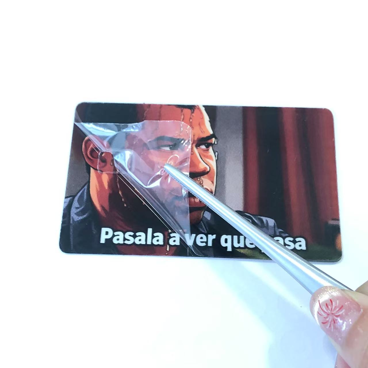 Afin de garantir la qualité du produit pendant le transport, chaque autocollant de carte de crédit est équipé d'un film protecteur sur la surface. Cette couche protectrice protège efficacement les autocollants des rayures, de la poussière et d'autres dommages potentiels pouvant survenir pendant le transport. À la réception de la marchandise, il suffit aux clients de décoller le film protecteur pour révéler l'apparence claire et vibrante des autocollants de carte de crédit.