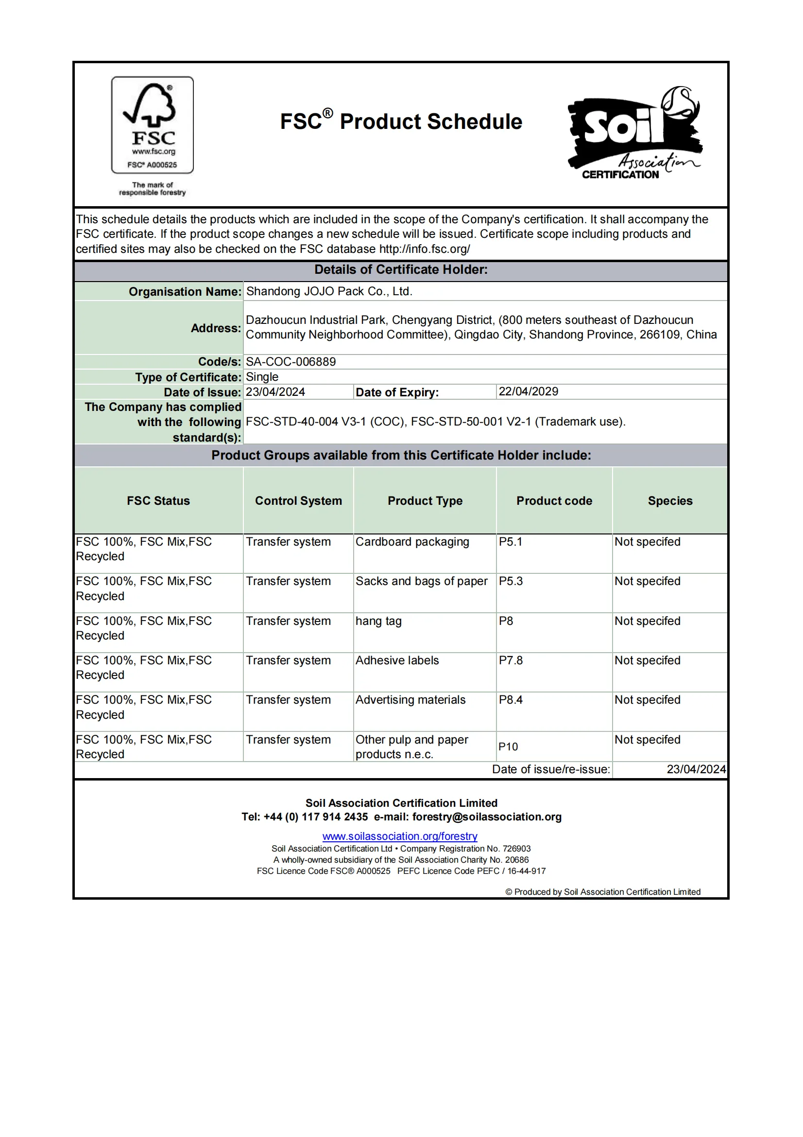 Pack JoJopossède un atelier de 18 000 mètres carrés, complété par une équipe professionnelle couvrant la conception, le traitement et la R&D. Nos autocollants et étiquettes répondent aux normes de certification rigoureuses, y compris le système de gestion de la qualité ISO 9001, ainsi que les certifications CMA, FSC, UL et SGS.