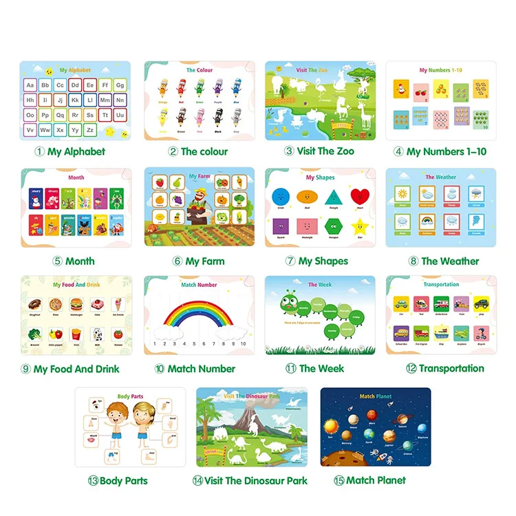 Les livres d'autocollants de JoJo Pack 15 thèmes d'étude inclus dans les livres d'autocollants de JoJo Pack sont: Alphabet, Colours, Visitez le zoo, chiffres (1-10), mois, ferme, formes, météo, nourriture et boisson, numéro de match, semaine, transport, parties du corps, visiter le parc Dinosaure, Match Planet.