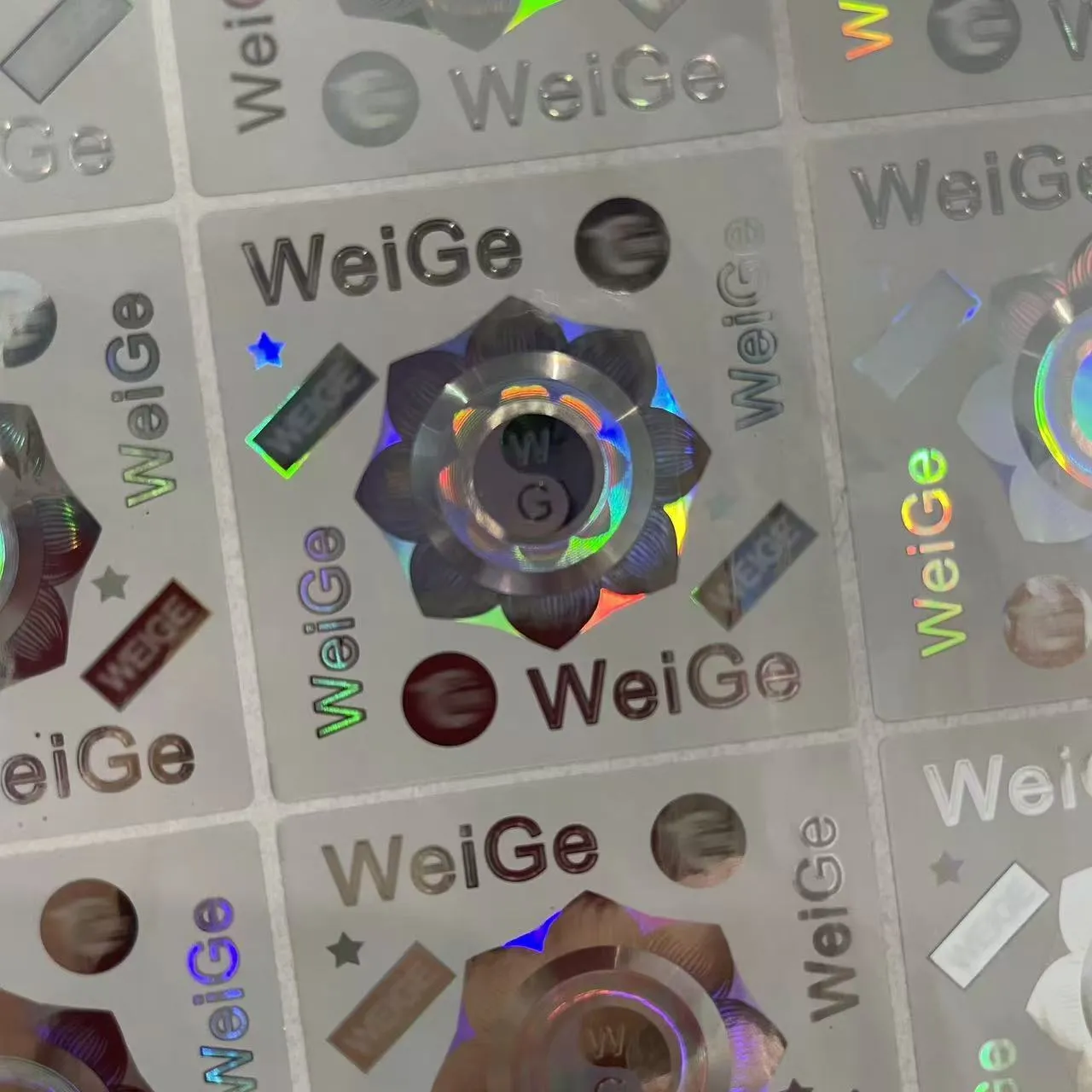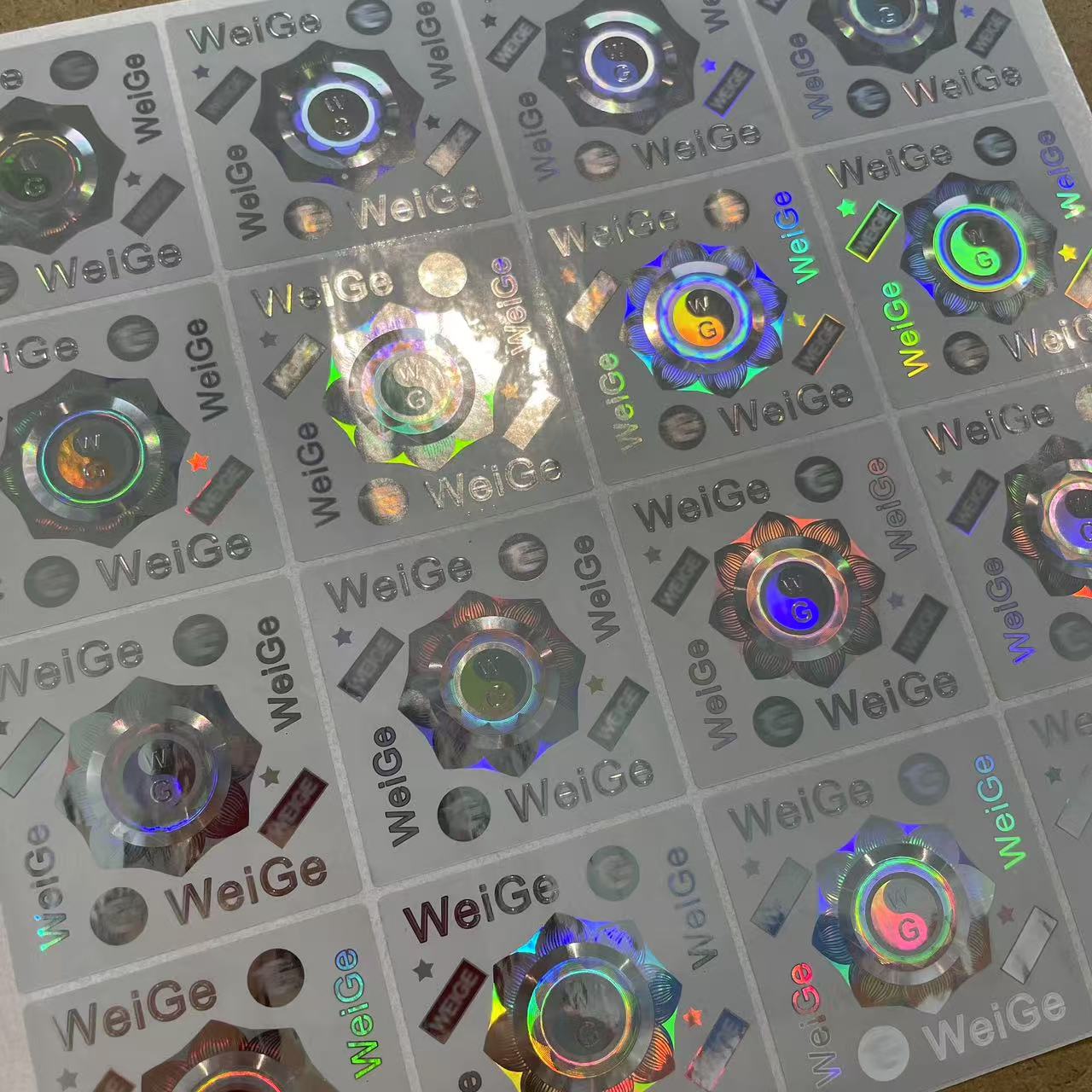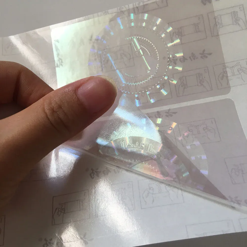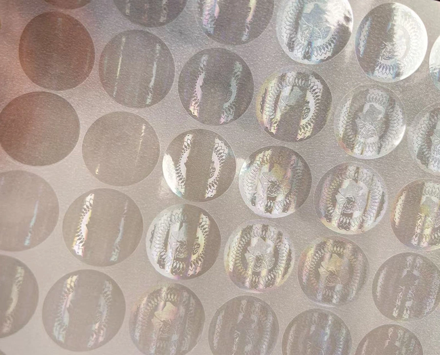 Impression de transfert de presse à chaud à motif holographique: l'équipement d'impression avec un modèle métallique est préchauffé à une température spécifique et soumis à une pression contrôlée précisément. Par la suite, le matériau vinyle avec le motif ordinaire déjà imprimé est étroitement adhéré au modèle métallique. Ce processus garantit non seulement que le modèle holographique est fermement attaché à l'étiquette, mais garantit également la présentation parfaite des détails du modèle et de la trois dimensionnalité. D'après différents angles, il peut afficher un effet brillant unique comme un arc-en-ciel.