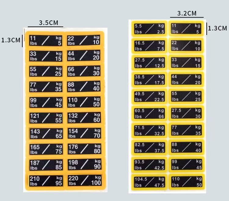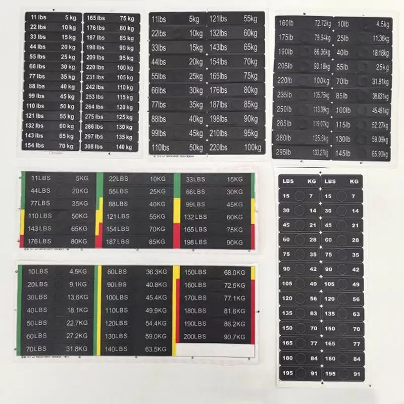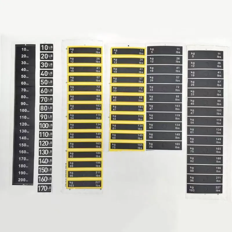 Fabriqués à partir de matériaux de première qualité, ces autocollants résistent à l’usure due à une utilisation quotidienne. Le texte imprimé reste net et ne se décolore pas pendant toute la durée de vie de l'équipement de fitness, garantissant ainsi des performances durables. Grâce à des marquages de poids clairs, les utilisateurs peuvent mieux suivre leurs progrès en matière de condition physique et définir des objectifs d'entraînement, réalisant ainsi une gestion scientifique de l'entraînement.