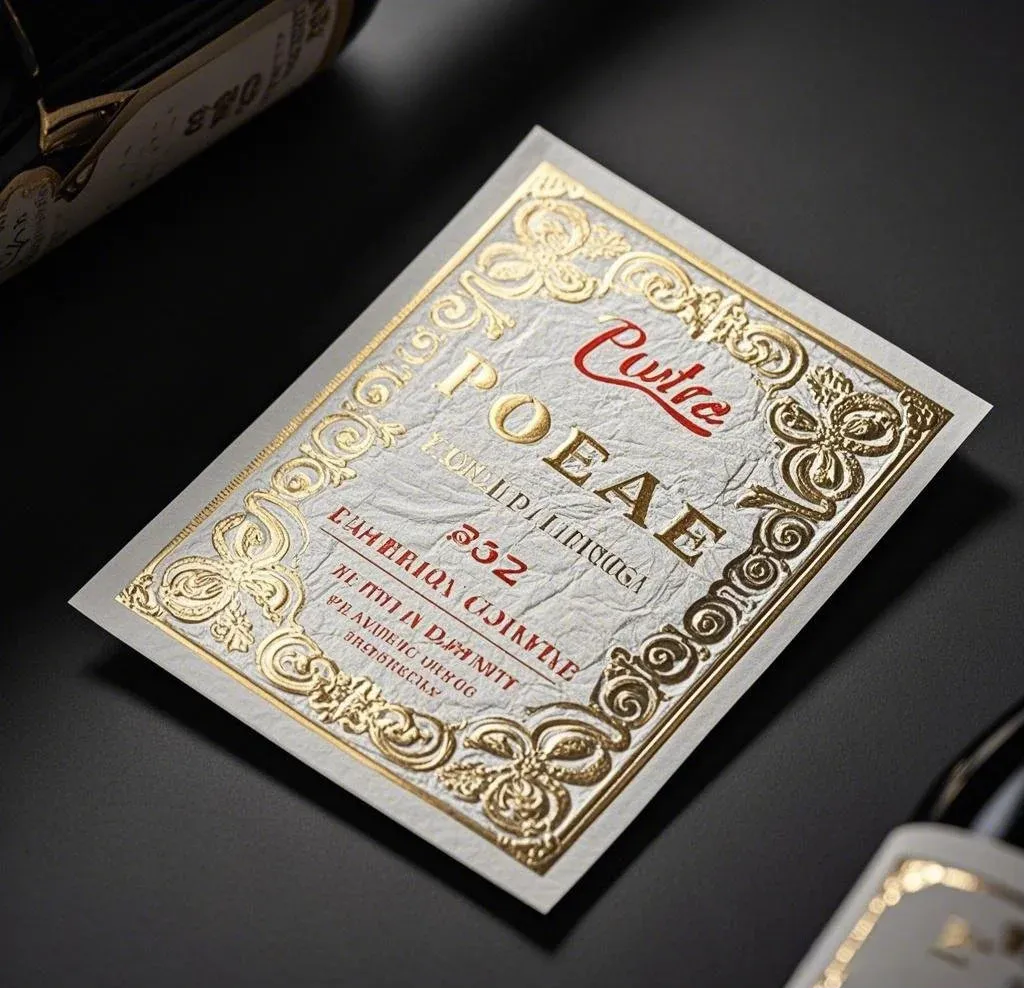 L'impression de gravure utilise un rouleau métallique avec des motifs gravés pour appuyer sur la surface du papier, laissant une texture complète. Il peut réaliser l'effet d'un papier texturé spécial en utilisant du papier cuivré ordinaire, avec une forte puissance décorative et un style unique. L'impression de gravure peut ajouter une texture unique à l'étiquette, permettant aux consommateurs de ressentir le charme extraordinaire du vin rouge en un coup d'œil.